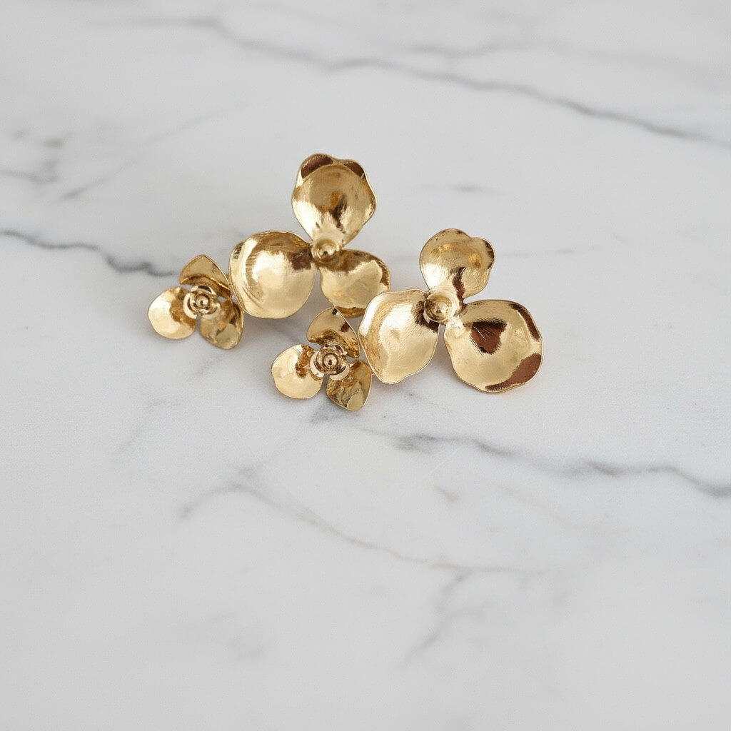 Shop > Boucles Little Percée Boucles Little Percée 145,00 € Victime de son succèsNon disponible avec ces options Boucles d'oreille composées de deux fleurs, dorées à l'or fin. Laiton doré à l'or fin. Hauteur des boucles 4cm. Système d'attache par tige et poussoir. Toutes nos pièces sont fabriquées sur commande. Le délais de production est de 3 semaines. Votre bijou est livré dans un joli coffret. Pour toute demande personnalisée, nous contacter par email: contact@lesmajestes.com Photo non contractuelle Photo @rembostyling ou @marylise #mariage#mariée#boucle d'oreillle#doré Partager Les Majestés imagine des bijoux pour vous accompagner le jour "J" mais également pour tous les jours. Les collections capsules sont imaginées et façonnées dans l 'atelier avec beaucoup d'amour!
