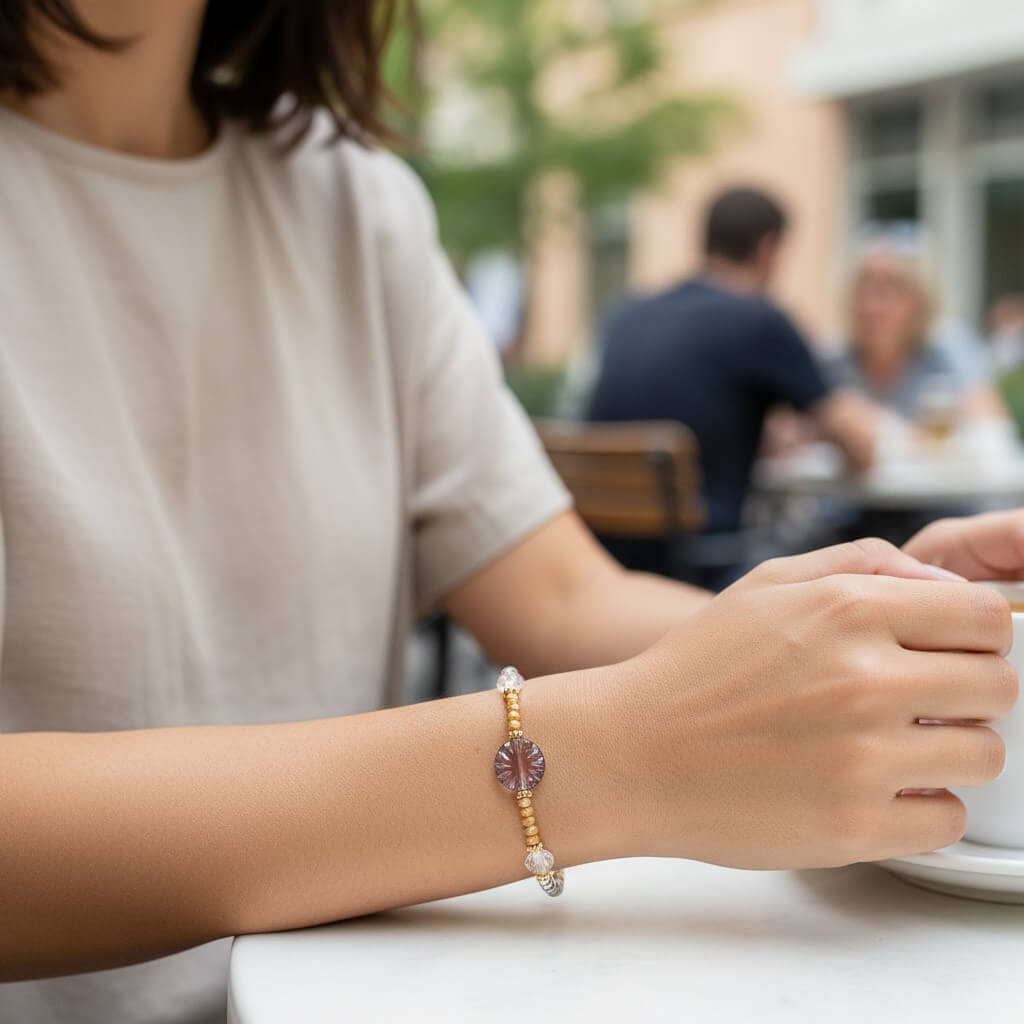 Shop > Bracelet Bonie Bracelet Bonie 39,00 € Victime de son succèsNon disponible avec ces options Bracelets avec des perles de verre colorées de style vintage. Longueur chaîne 16.5cm et 3 cm de rallonge. Laiton doré à l'or fin. Photo non contractuelle: chaque pièce est faite à la main. Il existe donc de petites différences entre chaque produit. Je préserve également quelques marques afin de garder votre bijou unique. #perles#bracelet Partager Les derniers bijoux sortis de nos ateliersL'atelier Les Majestés imagine également des bijoux pour toutes les occasions et pour vous sublimer au quotidien. Comme pour répondre à l'univers "blanc" de la collection pour mariée, j'aime créer des bijoux colorés et joyeux!