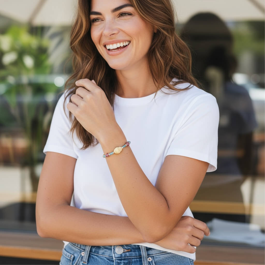Shop > Bracelet Ben Bracelet Ben 39,00 € Victime de son succèsNon disponible avec ces options Bracelets avec des perles de verre colorées de style vintage. Longueur chaîne 16.5cm et 3 cm de rallonge. Laiton doré à l'or fin. Photo non contractuelle: chaque pièce est faite à la main. Il existe donc de petites différences entre chaque produit. Je préserve également quelques marques afin de garder votre bijou unique. #perles#bracelet Partager Les derniers bijoux sortis de nos ateliersL'atelier Les Majestés imagine également des bijoux pour toutes les occasions et pour vous sublimer au quotidien. Comme pour répondre à l'univers "blanc" de la collection pour mariée, j'aime créer des bijoux colorés et joyeux!